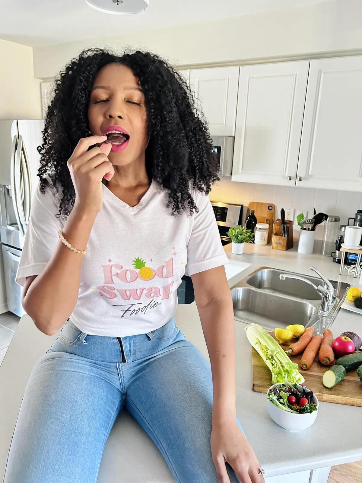 I'm a certified culinary nutritionist, author TV guest expert and creator of Food Swap Foodie Inc who hacked my mind and body to overcome an addiction to sugar and lose 30 lbs eight years ago.